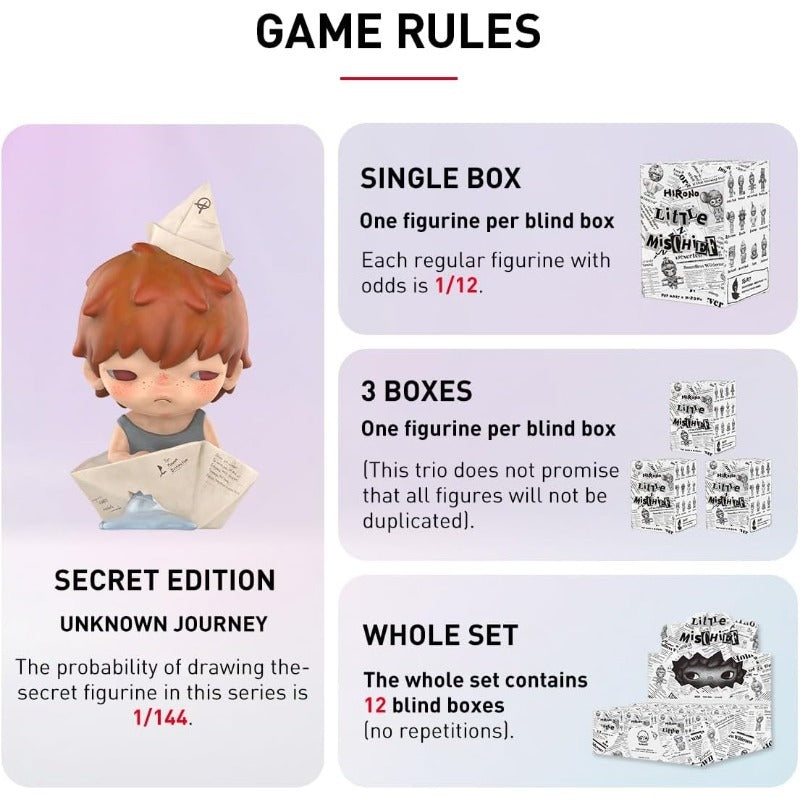 Each PopXBox series includes several regular figures and may feature rare or hidden editions. The probability of each design is clearly shown on the product page. When you buy a Single Box, you’ll receive one random figure from the series. A Whole Set contains all regular figures with a chance of a hidden variant replacing one. If your set includes duplicates, please contact us at support@popxbox.com — we’ll replace the missing regular figure for free.
